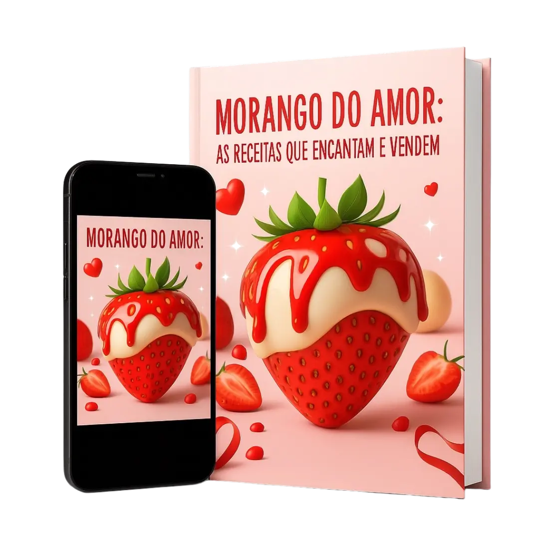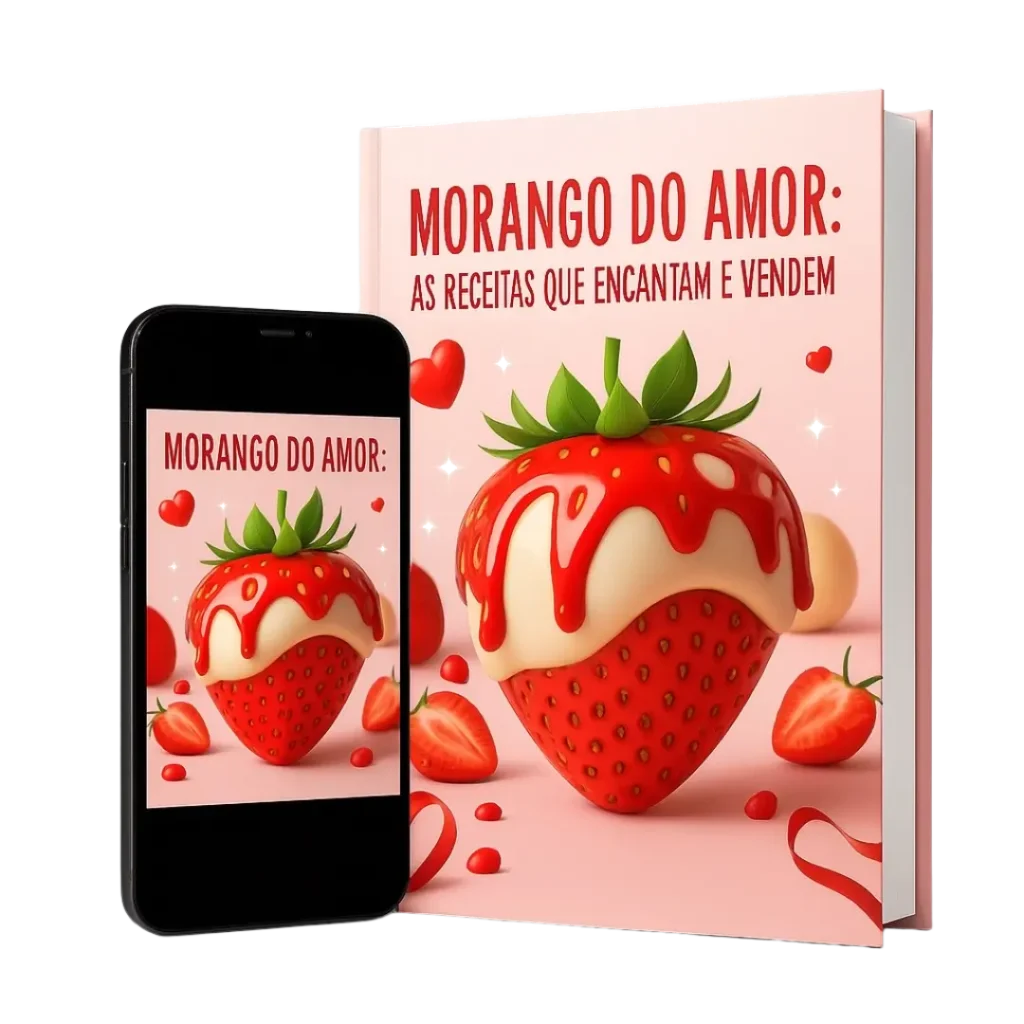 Morango do Amor: Receitas que Encantam é o guia completo para quem quer aprender a criar doces artesanais com acabamento profissional, sabor irresistível e potencial real de lucro.